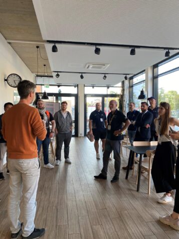 Auch das Stellwerk18 war als Partner und Förderer der Buko mit dabei. Wir stellten unsere Konferenzräume für Vorträge und Trainings zur Verfügung und waren auch selbst ins Programm eingebunden. Unser Geschäftsführer Dr. Florian Wiesböck führte am 19.9. bei einem Rundgang eine Gruppe von Konferenzteilnehmern durch unser Gebäude. Am Ende der Führung versammelte sich die Gruppe auf unserer schönen Dachterrasse. Bei einem erfrischenden Bier oder einem Radler ließen die Teilnehmenden die Führung ausklingen, genossen den Panoramablick auf die Stadt und tauschten sich in entspannter Atmosphäre weiter aus.