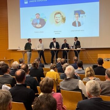An der anschließenden Podiumsdiskussion nahmen regionale KI-Experten teil, darunter Prof. Dr. Gröner, Tobias Jonas, Prof. Sebastian P. Bayerl und Christopher Heid. Moderiert von Dr. Florian Wiesböck, Geschäftsführer des Stellwerk18, wurde intensiv über Chancen und Herausforderungen der KI diskutiert, insbesondere wie Unternehmen den digitalen Wandel erfolgreich meistern können. Die Teilnehmer hatten Gelegenheit, Fragen zu stellen und wertvolle Einblicke in die praktischen Anwendungen der KI in verschiedenen Geschäftsfeldern zu erhalten.