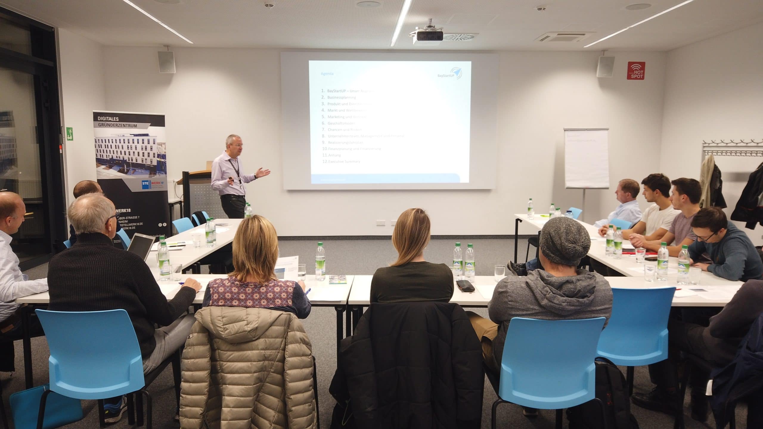 Bei dem Grundlagen-Workshop am Mittwoch, den 27.11.2019 vermittelte der Gründerexperte Markus A. Schilling von BayStartUP praxisnahes Wissen zur Geschäftsplanung und half dabei das Vorhaben strukturiert zu planen, sodass dem Unternehmertum nichts mehr im Wege stehen kann.