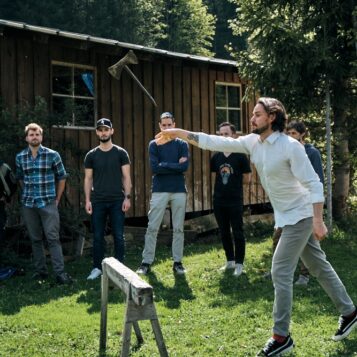 60 Teilnehmer:innen mit 20 Startup Ideen kamen aus allen fünf Partnerregionen, Rosenheim, Traunstein, Berchtesgadener Land, Tirol und Salzburg, zusammen und konnten im Zuge des Wochenendes gemeinsam mit 10 Startup-Coaches ihre innovativen Geschäftsideen im Team weiterentwickeln. Losgelöst vom Alltag konnten zudem mit intensiven Knowledge-Transfers durch 27 Expert:innen die Geschäftsmodelle gefestigt werden. Aber auch der Spaß fehlte nicht bei Aktionen wie Bogenschießen, Axtwerfen und dem Austausch der Erfahrungen am Lagerfeuer inmitten der Berge Salzburgs und des Chiemgaus. Zum Abschluss präsentierten dann die Teilnehmer:innen ihre Geschäftsideen vor versammelter Mannschaft und erhielten viel wertvolles Feedback aus der Expert:innen-Runde.