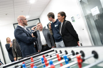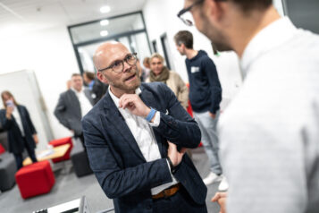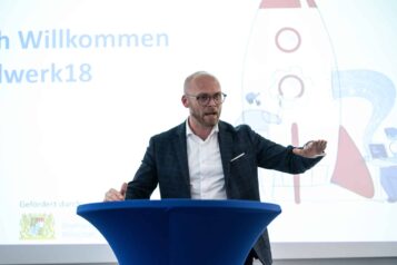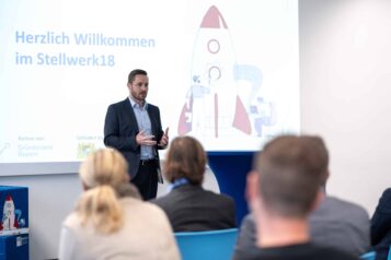 Nach den Pitches folgte ein Rundgang durch das Gebäude und der Nachmittag endete mit einem Get-together in der Stellwerk18-Cafeteria, bei dem sich die Teilnehmer austauschten. Dr. Mehring lobte die Dynamik und Innovationskraft der Region und betonte die wichtige Rolle des Stellwerk18 als Katalysator für digitale Entwicklungen in Bayern.