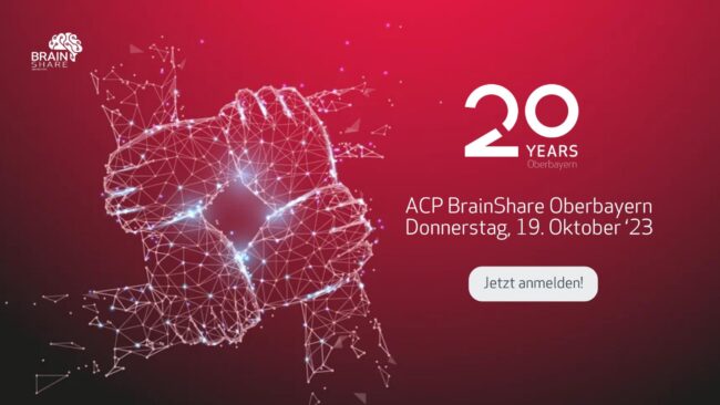 ACP BrainShare Oberbayern Tauchen Sie ein in die faszinierende Welt der Informationstechnologie und erleben Sie bei unserer diesjährigen Konferenz Innovationen, Wissensaustausch und inspirierende Vorträge. Wir laden Sie herzlich ein, Teil…