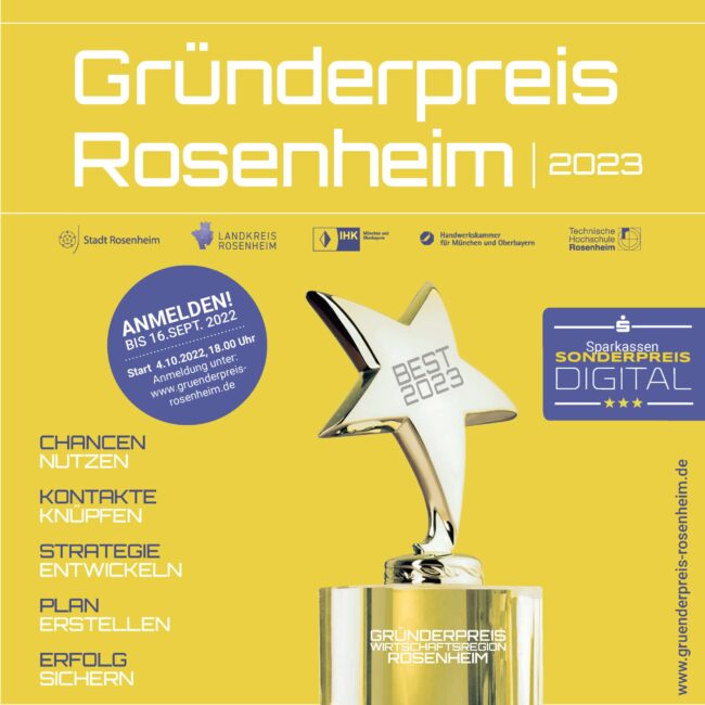 5. Gründerpreis der Wirtschaftsregion Rosenheim Der Wirtschaftsraum Rosenheim verdankt seine Attraktivität und Stabilität zu großen Teilen den vielen erfolgreichen ansässigen Unternehmen unterschiedlichster Branchen. Diese Attraktivität kann aber nur erhalten und…