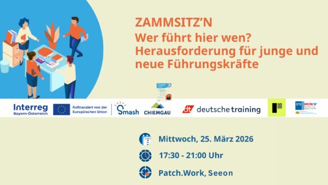 ZAMMSITZ’N Wer führt hier wen? Herausforderungen für junge und neue Führungskräfte Als Experte begleitet: Josef Eisenberger, deutsche training sales- and management-training GmbH Agenda: – 17:30 Uhr | Beginn und Begrüßung –…