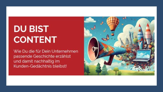 „Du bist Content“ Wie Du die für Dein Unternehmen passende Geschichte erzählst und damit nachhaltig im Kunden-Gedächtnis bleibst! VIER Fragen beschreiben die Inhalte des Workshops am besten: Wie erzähle ich…