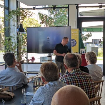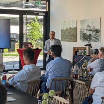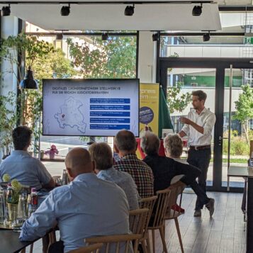 Bei einem interessanten Treffen in unserem Bistro DasSTELLWERK18 gab Geschäftsführer Dr. Florian Wiesböck in einem kurzen Vortag Einblick in unsere Stellwerk18 – Welt. Drei unserer Gründerteams, e-vein GmbH, LEAF AI und innFactory GmbH, präsentierten anschließend Ihre digitalen Geschäftsmodelle als Beispiele der vielfältigen Startups unseres Netzwerks.