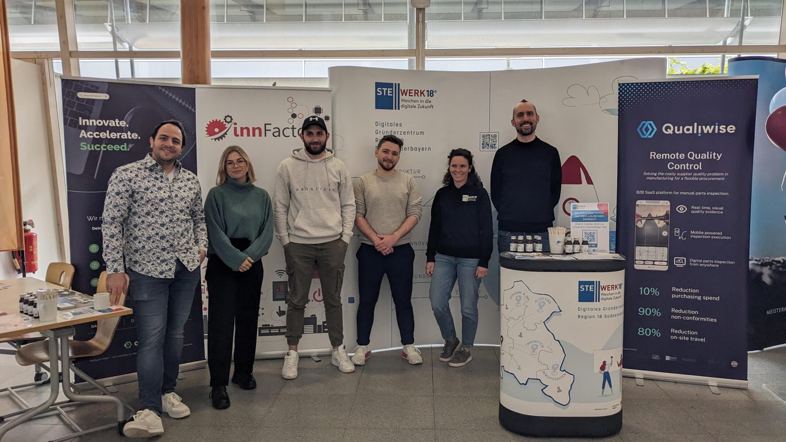 Seit über 30 Jahren bringt die IKORO, die zweitägige Industrie- und Kontaktmesse der Technischen Hochschule Rosenheim, Studierende mit potentiellen Arbeitgebern zusammen. Auch dieses Jahr waren wir wieder mit einigen Startups aus dem Stellwerk18-Ökosystem vor Ort, um diese großartige Gelegenheit zu nutzen. Mit dabei waren Coding9, innFactory und Qualiwise am Vormittag sowie Aeqoris, holzbau.tech und maut1.de am Nachmittag. Alle konnten viele gute Gespräche mit den Besuchern und Besucherinnen führen und den ein oder anderen werden wir hoffentlich bald im Stellwerk18 wiedersehen – sei es zum Tag der offenen Tür am 14. Mai 2024 oder mit seiner eigenen Geschäftsidee ?.